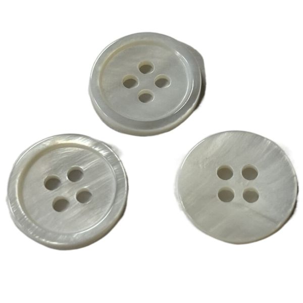 Usually the face side is lighter and the back side is darker and has displays the roughness of the shell. Mass models are dense, thick and durable. Modern shell buttons do not break easily and you will not have to change the style of your garment, because one or two of them have broken.The usual size is from 14 to 18, but if you have special requirements, they can be fabricated in any other size. Shell buttons can even be made with size 40.